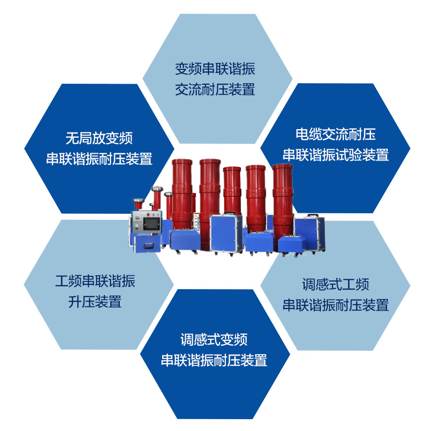 目前在國際和國內已有越來越多的XLPE 交聯聚乙烯絕緣的電力電纜替代原有的充油油紙絕緣的電力電纜。但在交聯電纜投運前的試驗手段上由于被試容量大和試驗設備的原因,仍沿襲使用直流耐壓的試驗方法。近年來國際、國內的很多研究機構的研究成果表明直流試驗對XLPE 交聯聚乙烯電纜有不同程度的損害。有的研究觀點認為XLPE 結構具有存儲積累單極性殘余電荷的能力,當在直流試驗后,如不能有效的釋放掉直流殘余電荷,投運后在直流殘余電荷加上交流電壓峰值將可能致使電纜發生擊穿。國內一些研究機構認為,交聯聚乙烯電纜的直流耐壓試驗中,由于空間電荷效應,絕緣中的實際電場強度可比電纜絕緣的工作電場強度高達11倍。交聯聚乙烯絕緣電纜即使通過了直流試驗不發生擊穿,也會引起絕緣的嚴重損傷。其次,由于施加的直流電壓場強分布與運行的交流電壓場強分布不同。直流試驗也不能真實模擬運行狀態下電纜承受的過電壓,并有效的發現電纜及電纜接頭本身和施工工藝上的缺陷。因此,使用非直流的方法對交聯電纜進行耐壓試驗就越來越受到人們的重視。同時,各種大型變壓器的交流耐壓試驗,火力及水力發電機的交流耐壓實驗也定期進行。這些設備的試驗要求的試驗設備容量大,通常情況下采用諧振的辦法進行試驗,但必須是在工頻條件下或等效工頻條件下進行。等效工頻條件一般采用45-65Hz 的頻率范圍,但很多試驗單位要求50Hz試驗電源對這類設備進行交流耐壓試驗。