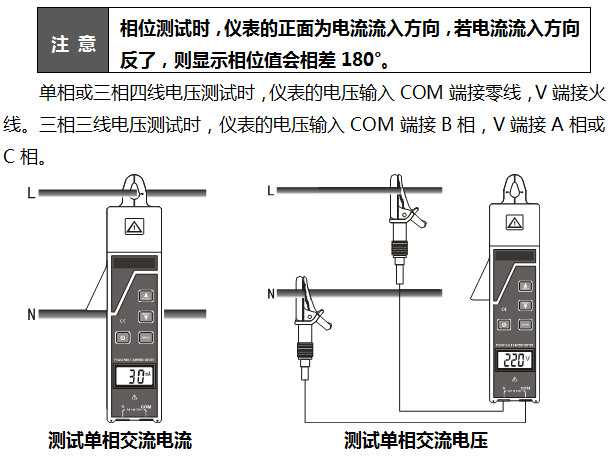 按MODE鍵切換顯示測試相位、電壓、電流、電壓頻率,開機默認顯示相位 |