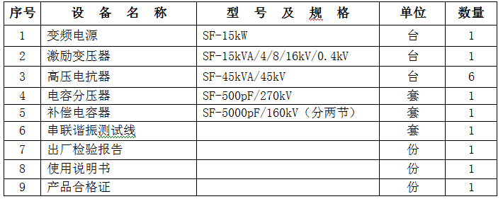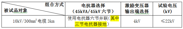 驗證:1、10kV/300mm2電纜3km的交流耐壓試驗,電容量≤1.1265uF,試驗頻率30-300Hz,試驗電壓22kV,試驗時間5min。