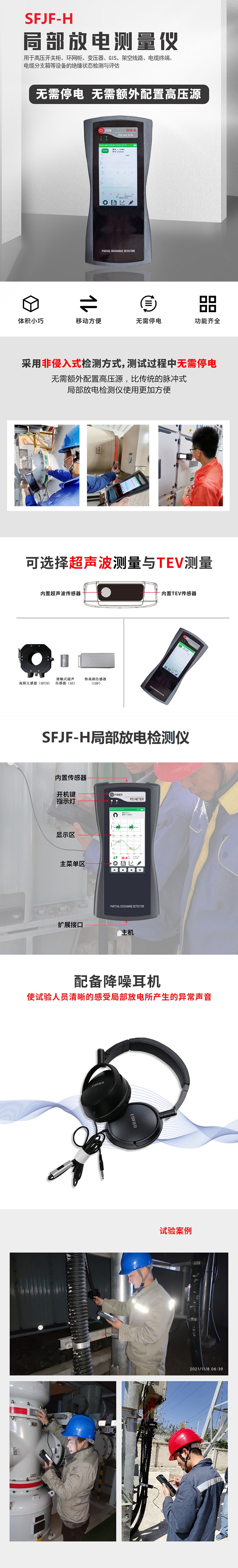 ? 采用非侵入式檢測(cè)方式,測(cè)試過程中無需停電,無需額外配置高壓源,比傳統(tǒng)的脈沖式局部放電檢測(cè)儀使用更加方便;