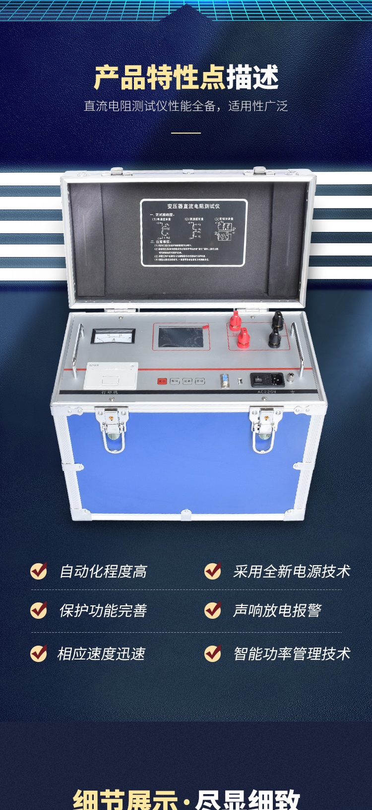SFR100A直流電阻測試儀主要用于大中型變壓器、發電機、電動機等直流電阻的測量,儀器設置多個電流檔位,滿足多種測量需求。