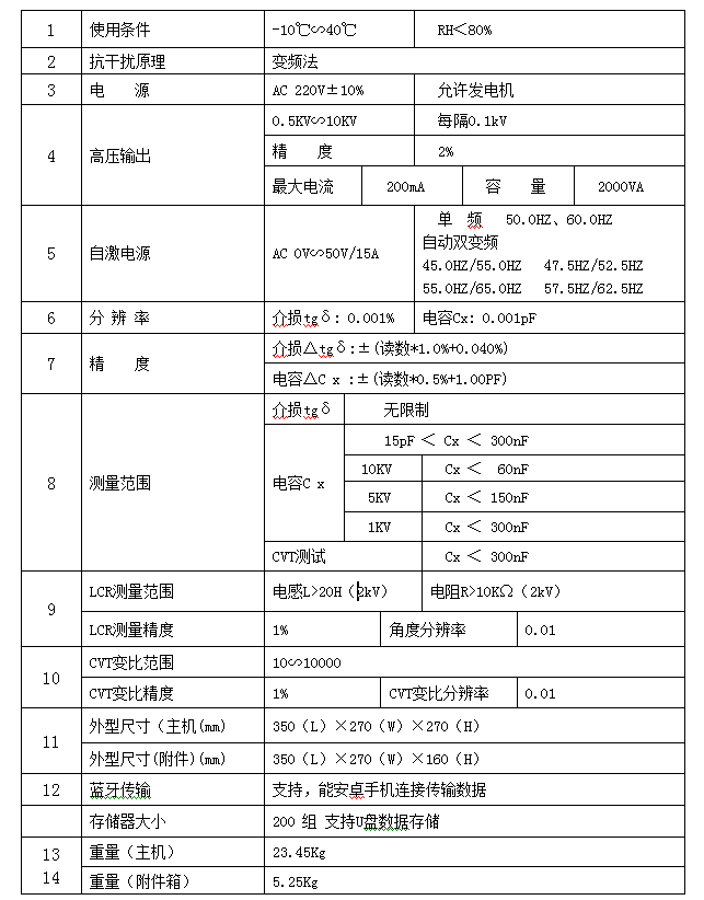 儀器能夠分別使用內高壓、外高壓、內標準、外標準、正接法、反接法、自激法等多種方式測試;在外標準外高壓正接法情況下可以做高電壓(大于10kV)介質損耗。