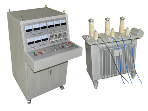 用工頻三相380V電源接入電動控制臺,經(jīng)感應調(diào)壓器調(diào)節(jié)0~400V電壓輸入至試驗變壓器初級繞組,根據(jù)電磁感應原理,在次級繞組得到可調(diào)的工頻電壓。