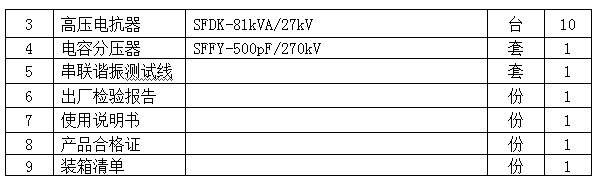 5、110KV開關柜、互感器、母排、絕緣子、GIS等變電站設備的交流耐壓試驗,試驗頻率30-300Hz,試驗電壓不超過265kV,試驗時間1min。