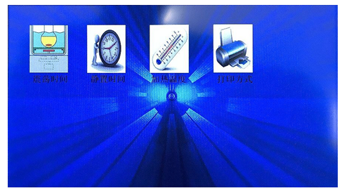 按系統設置鍵,進入系統設置界面(圖4),此界面可設定:震蕩時間、靜止時間、加熱溫度、打印方式。