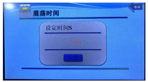 震蕩時間設定界面(圖5),設定所需正當時間,默認300S。設定好后,按返回鍵自動保存所設定時間。