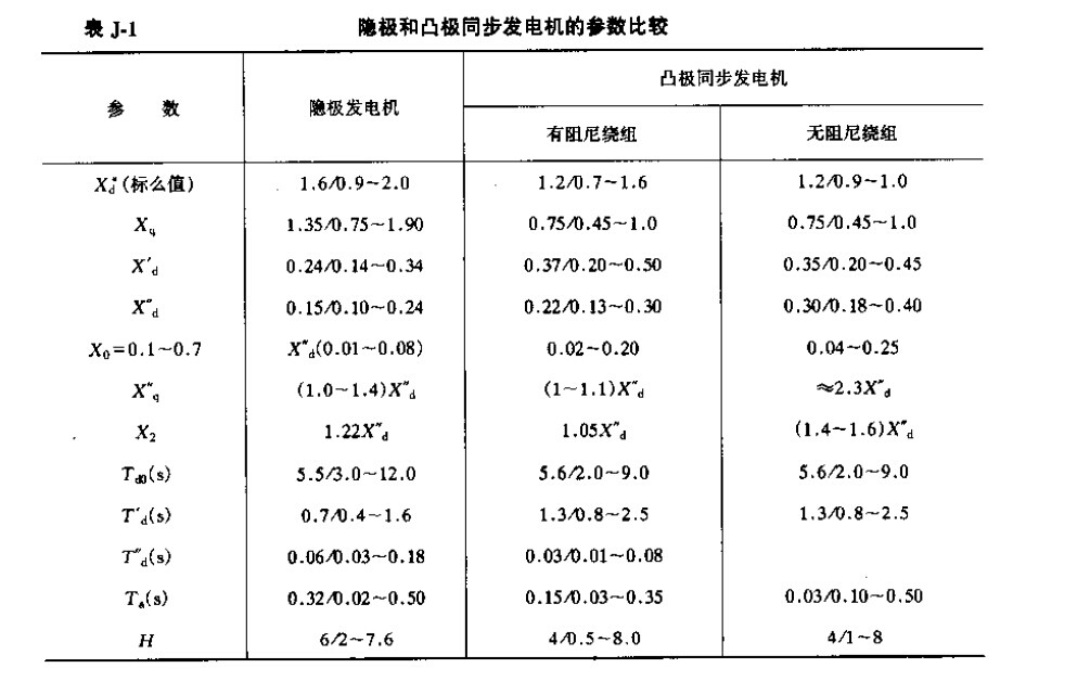 同步發(fā)電機的參數(shù)(參考值)