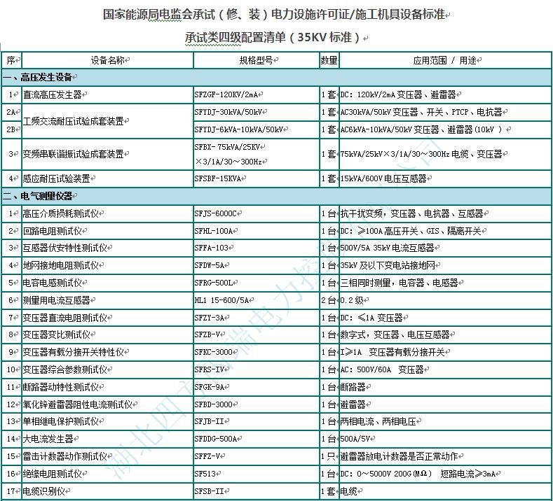 貴州承試四級(jí)資質(zhì)設(shè)備清單