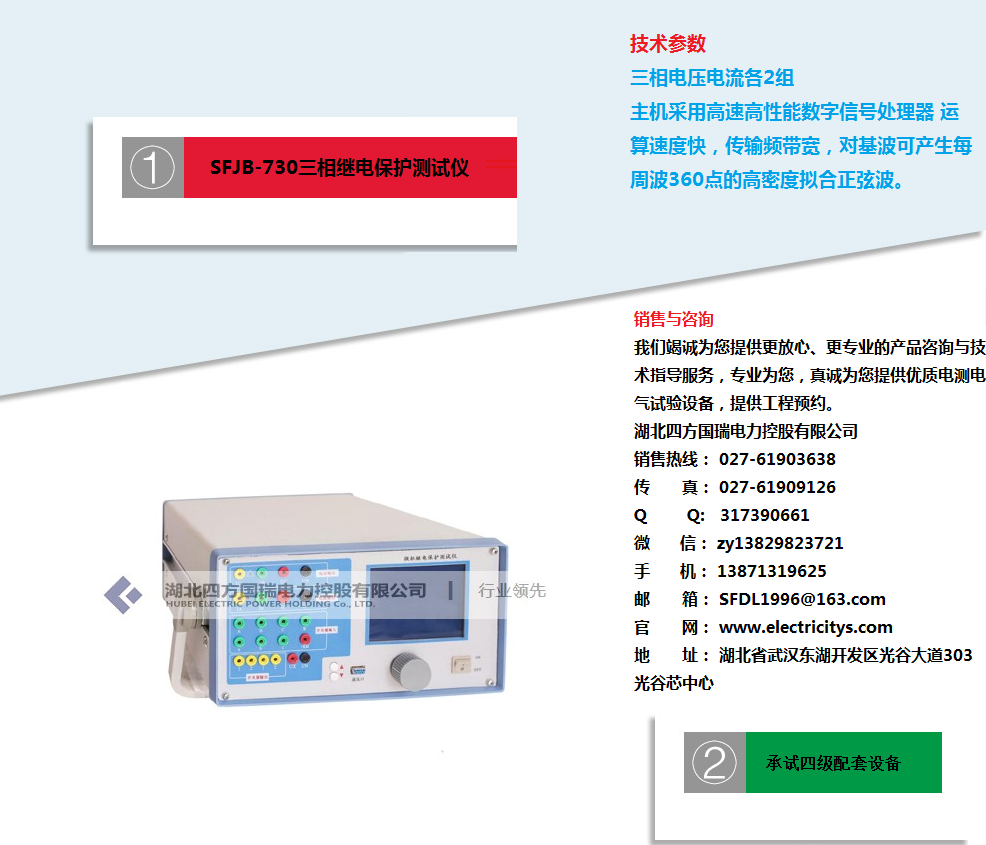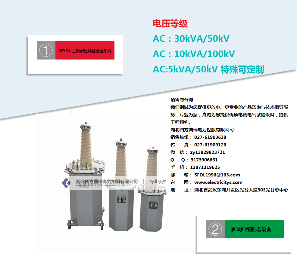 湖北四方國瑞電力控股有限公司始終秉承“專業打造精品電測產品,誠信贏得至高市場榮譽”的企業精神,努力不斷地為國內外客戶制造精品電測產品,為電力行業發展貢獻自己的一份力量。我們將盡快安排電力工程師為您及時解答!湖北四方國瑞電力控股有限公司.位于國家級高新技術開發區四方國瑞電力工業園內,是一家專業從事電力電氣檢測(測量)設備、儀器儀表、電力自動化系統的研發、生產與銷售的資深品牌科技企業。湖北四方國瑞電力是一家專業生產及銷售:試驗變壓器、工頻耐壓裝置、綜合試驗臺、高壓耐壓設備、串聯諧振承試設備選型、變壓器測試儀器、繼電保護測試儀、斷路器測試、開關測試儀器、避雷器測試儀器、接地、絕緣電阻測試儀器、互感器檢測及計量儀器、SF6、油化測試儀、蓄電池檢測儀無功補償電容檢測。