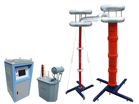 原理,我們已知,在回路頻率f=1/2π√LC時,回路產生諧振,此時試品上的電壓是勵磁變高壓端輸出電壓的Q倍。Q為系統品質因素,即電壓諧振倍數,一般為幾十到一百以上。先通過調節變頻電源的輸出頻率使回路發生串聯諧振,再在回路諧振的條件下調節變頻電源輸出電壓使試品電壓達到試驗值。由于回路的諧振,變頻電源較小的輸出電壓就可在試品CX上產生較高的試驗電壓。