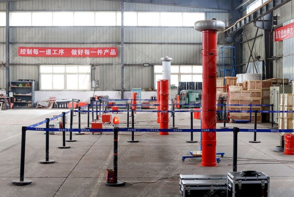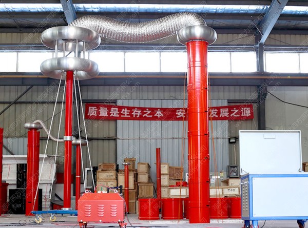 原理,我們已知,在回路頻率f=1/2π√LC時,回路產生諧振,此時試品上的電壓是勵磁變高壓端輸出電壓的Q倍。Q為系統品質因素,即電壓諧振倍數,一般為幾十到一百以上。先通過調節變頻電源的輸出頻率使回路發生串聯諧振,再在回路諧振的條件下調節變頻電源輸出電壓使試品電壓達到試驗值。由于回路的諧振,變頻電源較小的輸出電壓就可在試品CX上產生較高的試驗電壓。