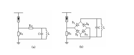 圖1(b)表示 JS-8型動作記數器的結構,系整流式結構。避雷器動作時,高溫閥片R1上的壓降經全波整流給電容器C充電,然后C再對電磁式記數器的L放電,使其記數。該記數器的閥片R1的阻值較小(在10kA時的壓降為1.1kV),通流容量較大(1200A方波),最小動作電流也為100A(8/20s)的沖擊電流。JS-8型記數器可用于6.0~330kV系統的避雷器,JS-8A型記數器可用于500kV系統的避雷器。