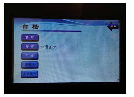 (3)按(自檢)鍵,進入自檢界面;見圖4,按(抬臂)鍵,升降臂上升到限位高度時自動停止。