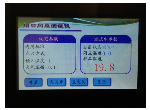 該儀器在國家標準規定的條件下,把試樣裝入試驗杯,對裝有試驗油的試驗杯加熱,產生的石油蒸氣與周圍空氣形成的混合氣體在與火焰接觸發生閃火時的最低溫度作為閃點。