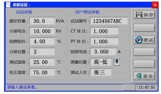 顯示三相電壓、三相電流、三相功率;自動計算出變壓器折算到額定溫度、額定電流下的阻抗電壓百分比,以及與銘牌阻抗的誤差百分比。