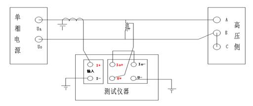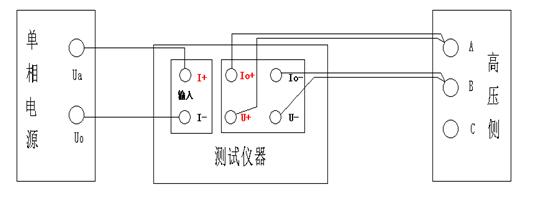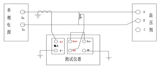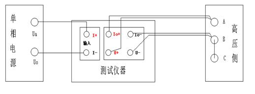 將低壓三相的接線端子短路連接,在高壓側(cè)加單相電源進行三次測量。